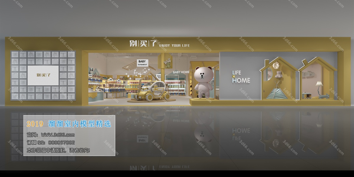 This 3D scene showcases a modern style showroom exhibition with a contemporary design and layout. Explore the intricate details and innovative elements in this visually appealing setting.