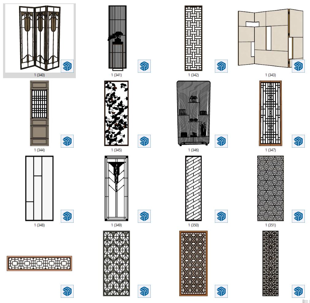This SKETCHUP/DECORATION image features a preview of a stylish partition design. The design combines modern aesthetics with functionality, creating a visually appealing and practical element for interior decoration projects. Explore this image for inspiration and ideas on incorporating innovative design elements into your own projects.
