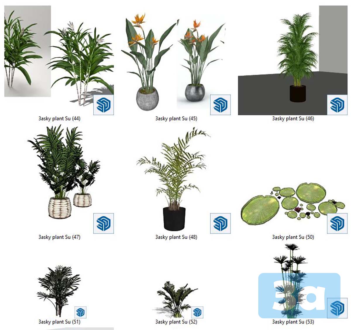 This SKETCHUP/DECORATION image features a detailed plant decoration, perfect for interior design projects. The 3D model provides a realistic representation of a plant, adding a touch of nature to any virtual space.