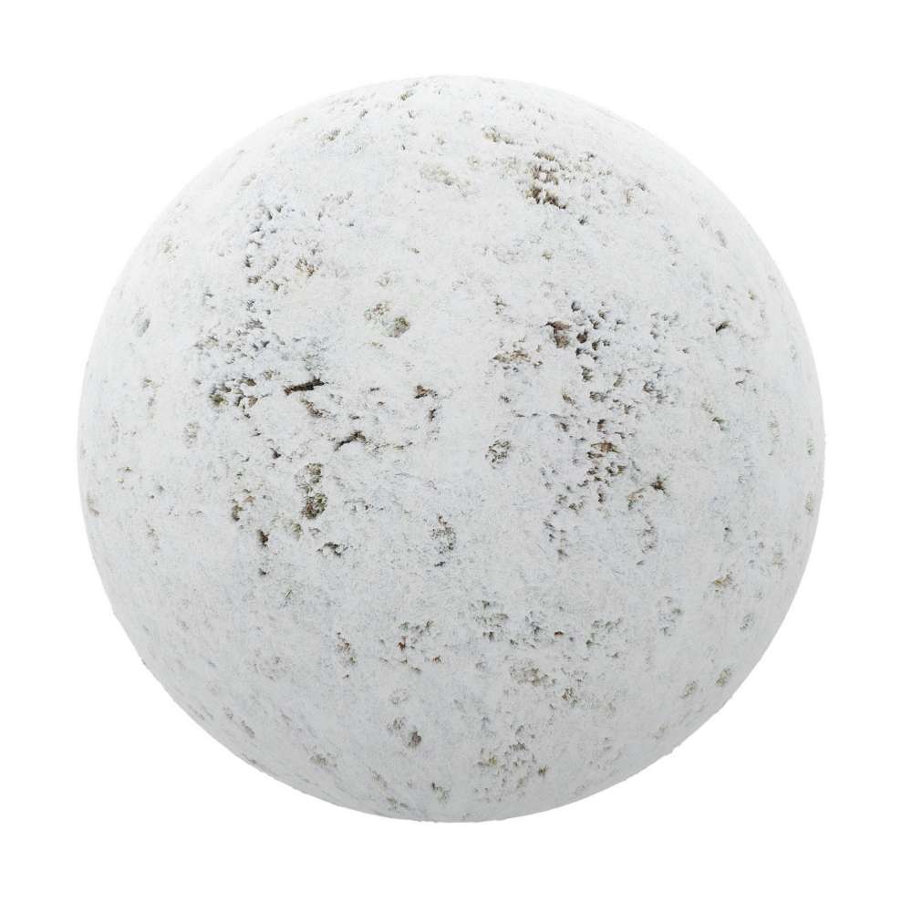 This 3D render showcases a realistic depiction of snow covering grass and dirt. The texture is high-quality and suitable for various design projects. The contrast between the white snow and the green grass creates a visually appealing scene. Download this texture to add a touch of winter to your designs.