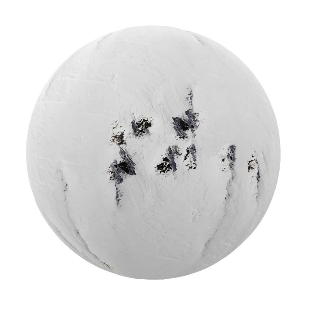 This 3D texture image features a snowy mountain landscape render. The image showcases a winter scene with snow-covered peaks and a serene atmosphere. Ideal for use in 3D modeling projects, architectural visualizations, and design work requiring a snowy mountain backdrop.