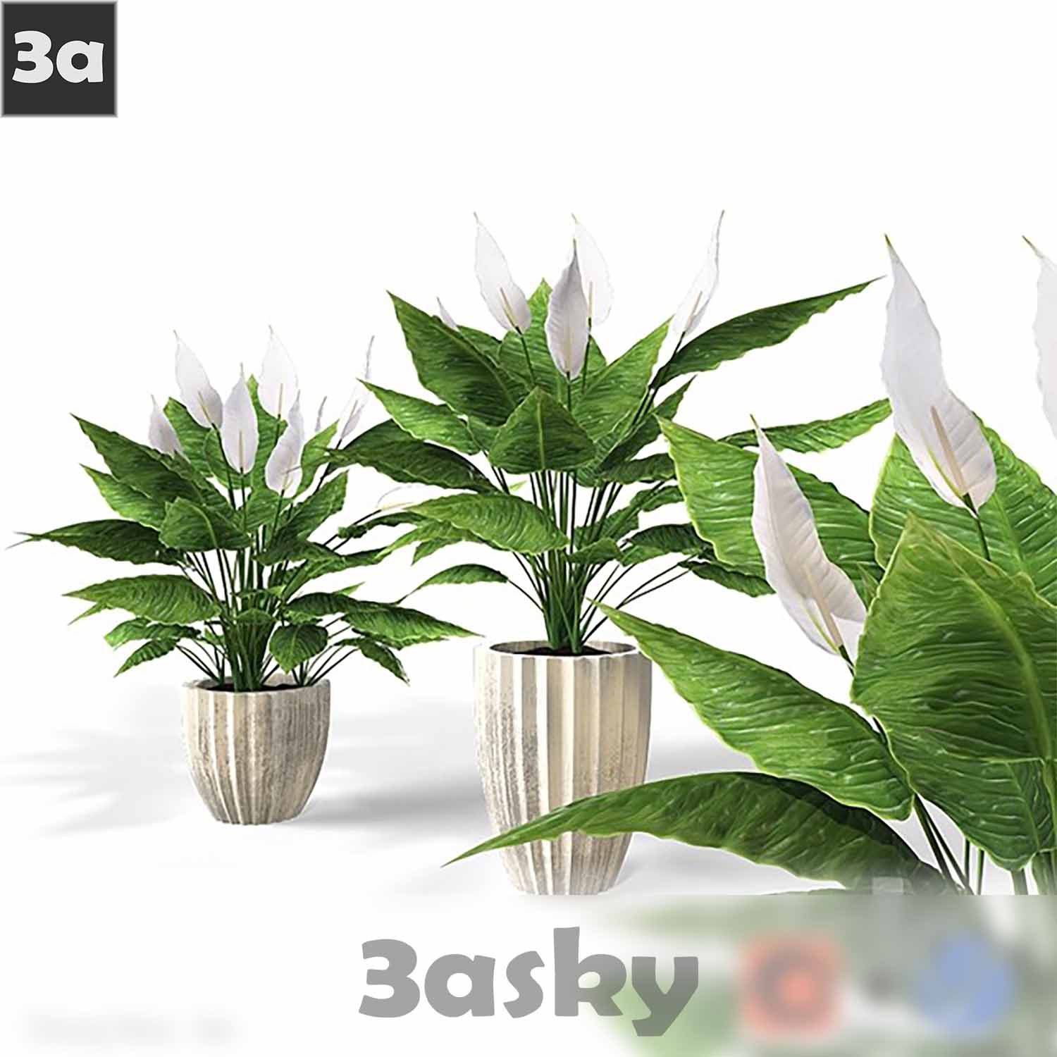 This 3D model features a detailed and realistic Spathiphyllum plant, suitable for use in architectural visualization, interior design, and landscaping projects. The file is in 3DS MAX format, making it compatible with a wide range of 3D modeling software. Enhance your projects with this high-quality plant model.