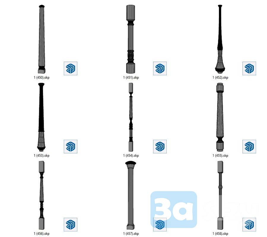 This SketchUp file features a staircase decoration design labeled as 1022-18. It is a detailed 3D model suitable for interior design and home decor projects. The file showcases intricate details and can serve as inspiration for designing staircases in various spaces.