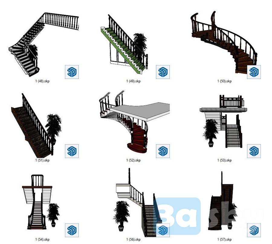 This SketchUp file features a detailed staircase decoration with a unique and elegant design. The 3D model showcases intricate details that can be used in interior design projects. Download the file to explore the design and incorporate it into your own projects.