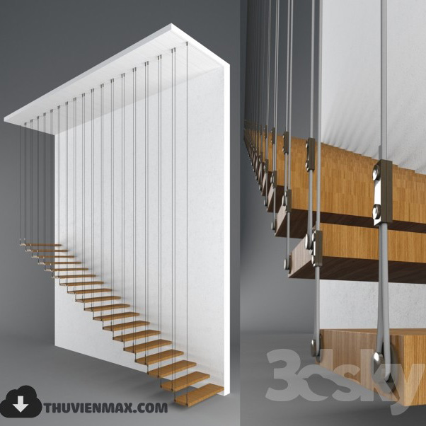 This 3D model showcases a staircase with ropes decoration, ideal for adding a unique touch to interior design projects. The intricate details and design elements make it a standout feature. Perfect for architectural visualization and interior design presentations.