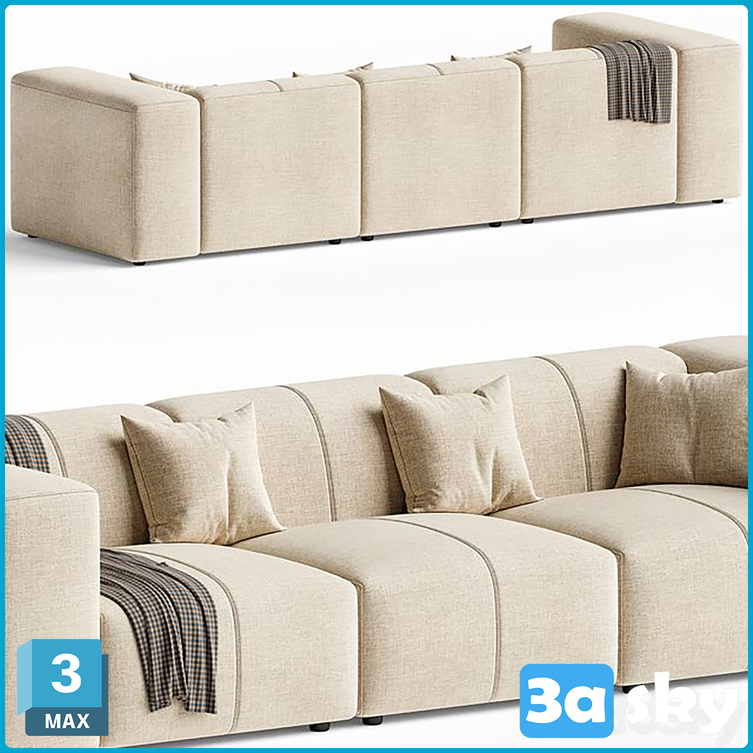 This 3D model features the Stefano 3-Piece Sectional Furniture, designed for modern living spaces. The model is created in 3DS MAX format and is ideal for interior design visualization projects.
