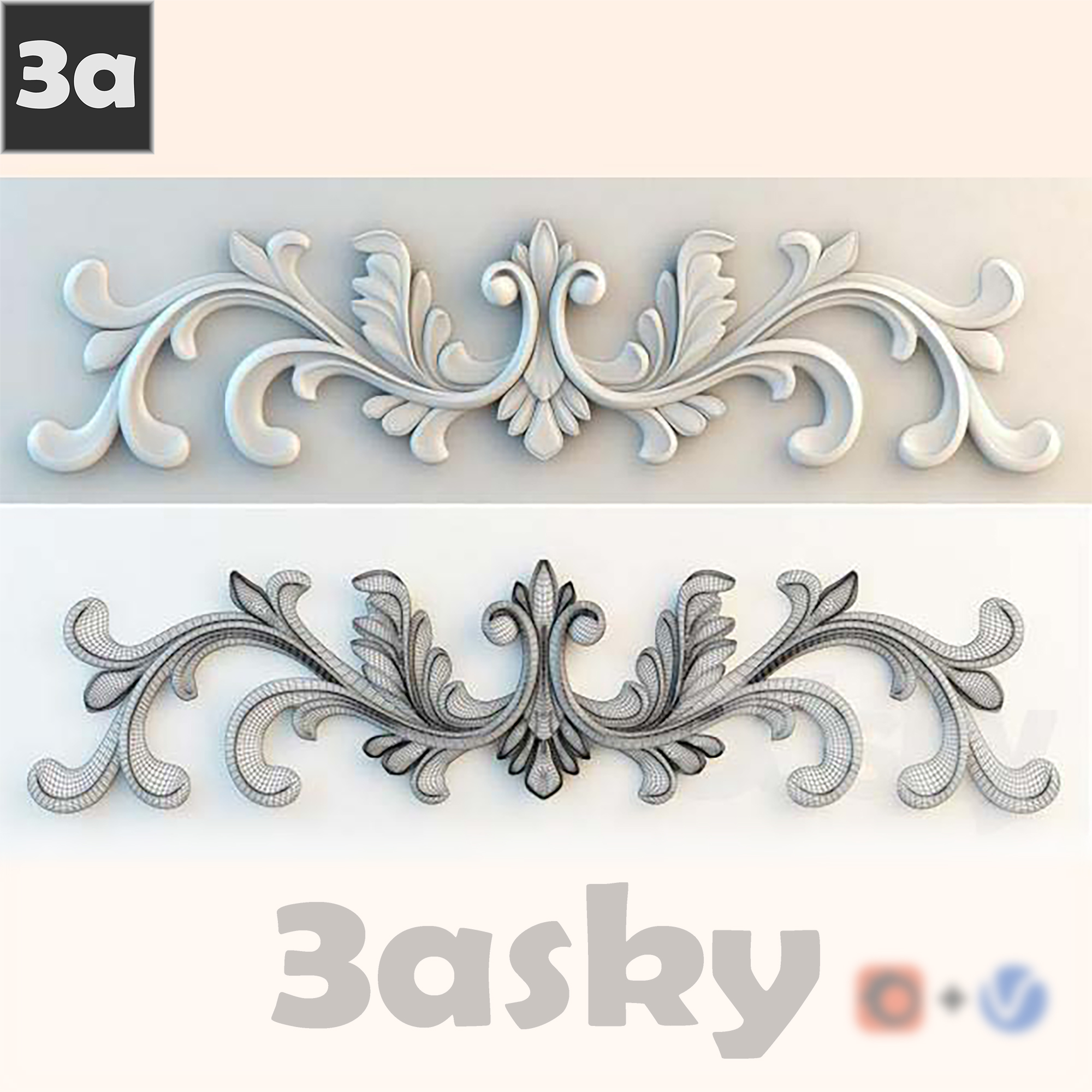This 3D model features a detailed preview of stucco decor, perfect for interior design projects. The intricate design and texture make it a versatile addition to any 3D modeling project.