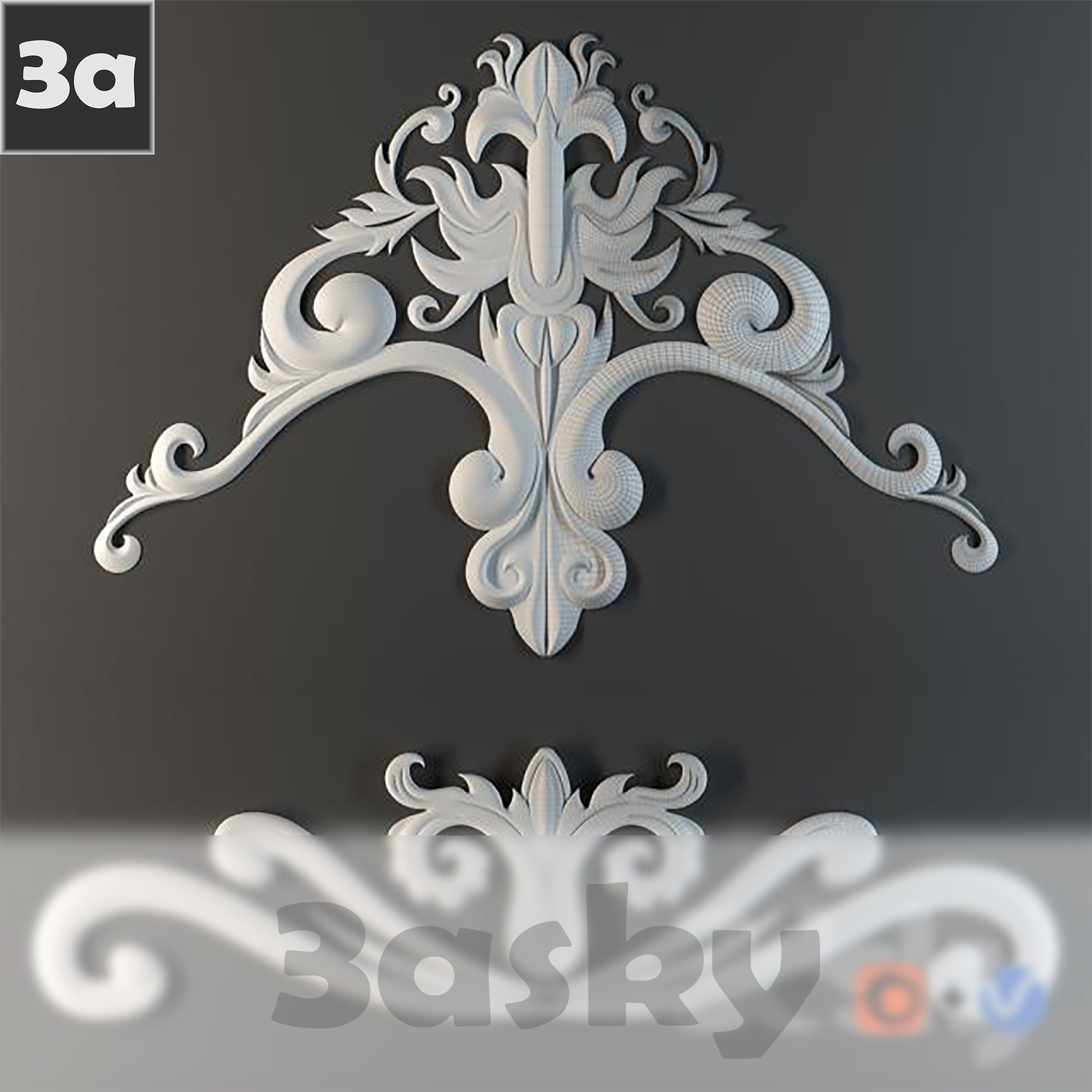 This 3D model features a detailed stucco decoration, ideal for adding a touch of elegance to architectural and interior design projects. The intricate design and high-quality rendering make it a versatile asset for various creative endeavors.
