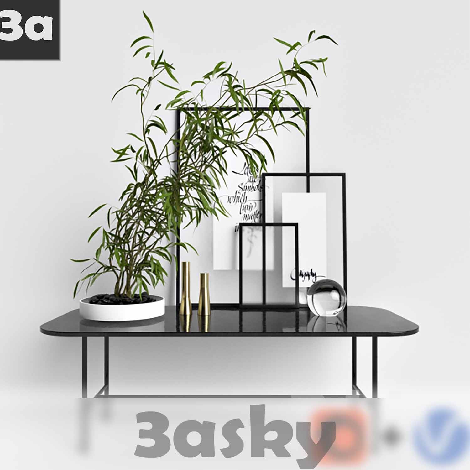 This 3D model file features a stylish set of decorations suitable for interior design projects. The file is created in 3DS MAX and offers high-quality details for realistic visualization. Perfect for adding a touch of elegance to your design concepts.