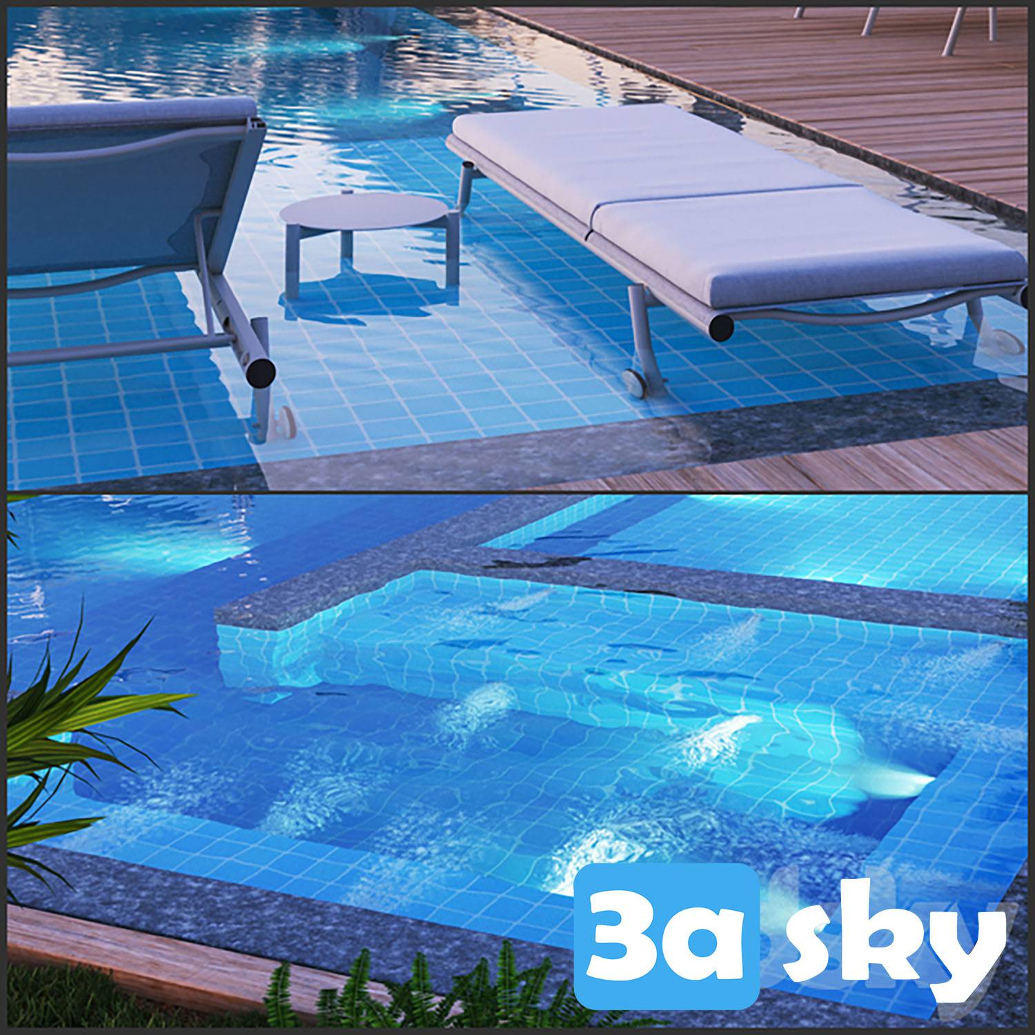 This 3D model showcases a beautifully designed swimming pool, ideal for architectural projects. The intricate details and realistic rendering make it a perfect addition to any design portfolio. Created using 3DS MAX software, this model captures the essence of a luxurious outdoor recreation space.