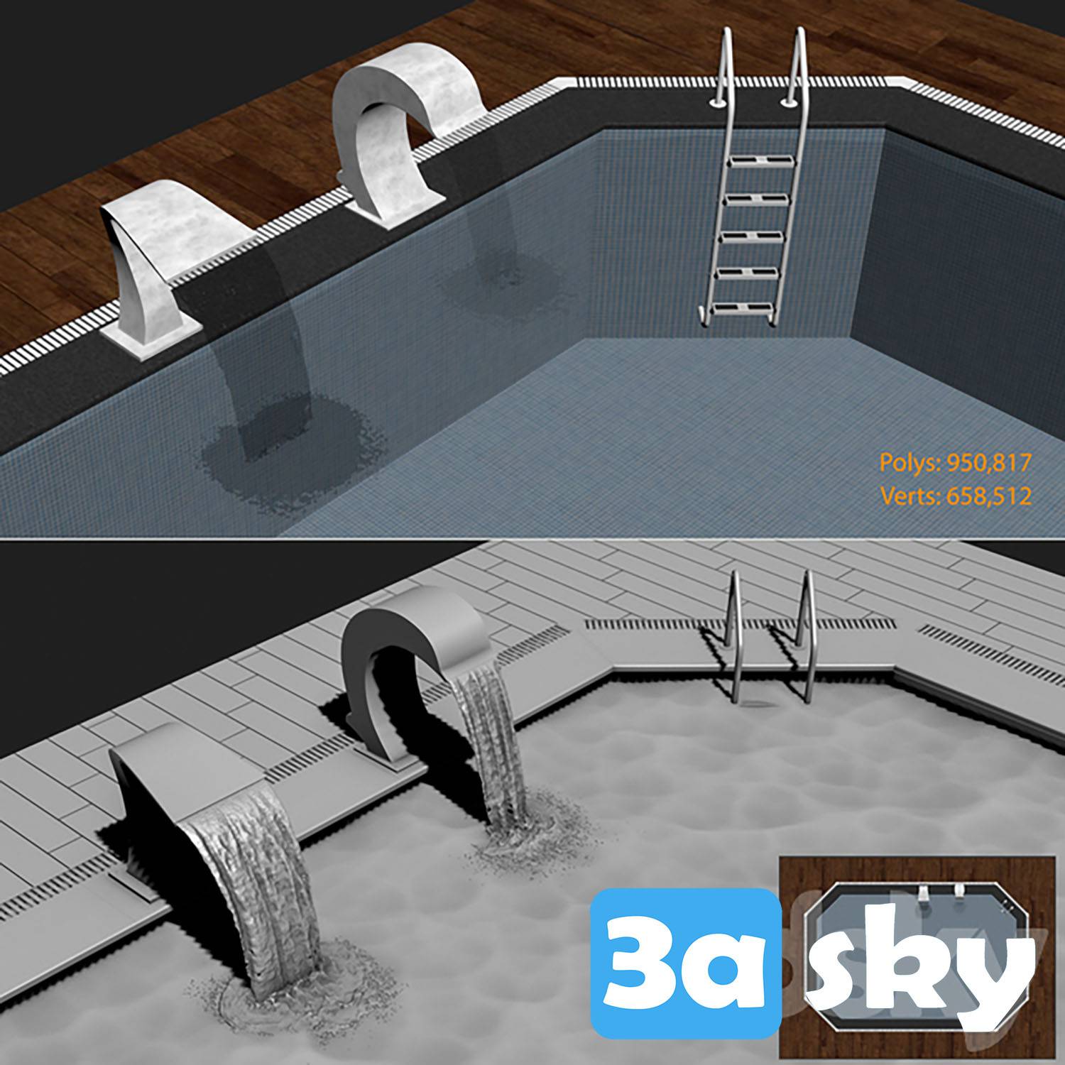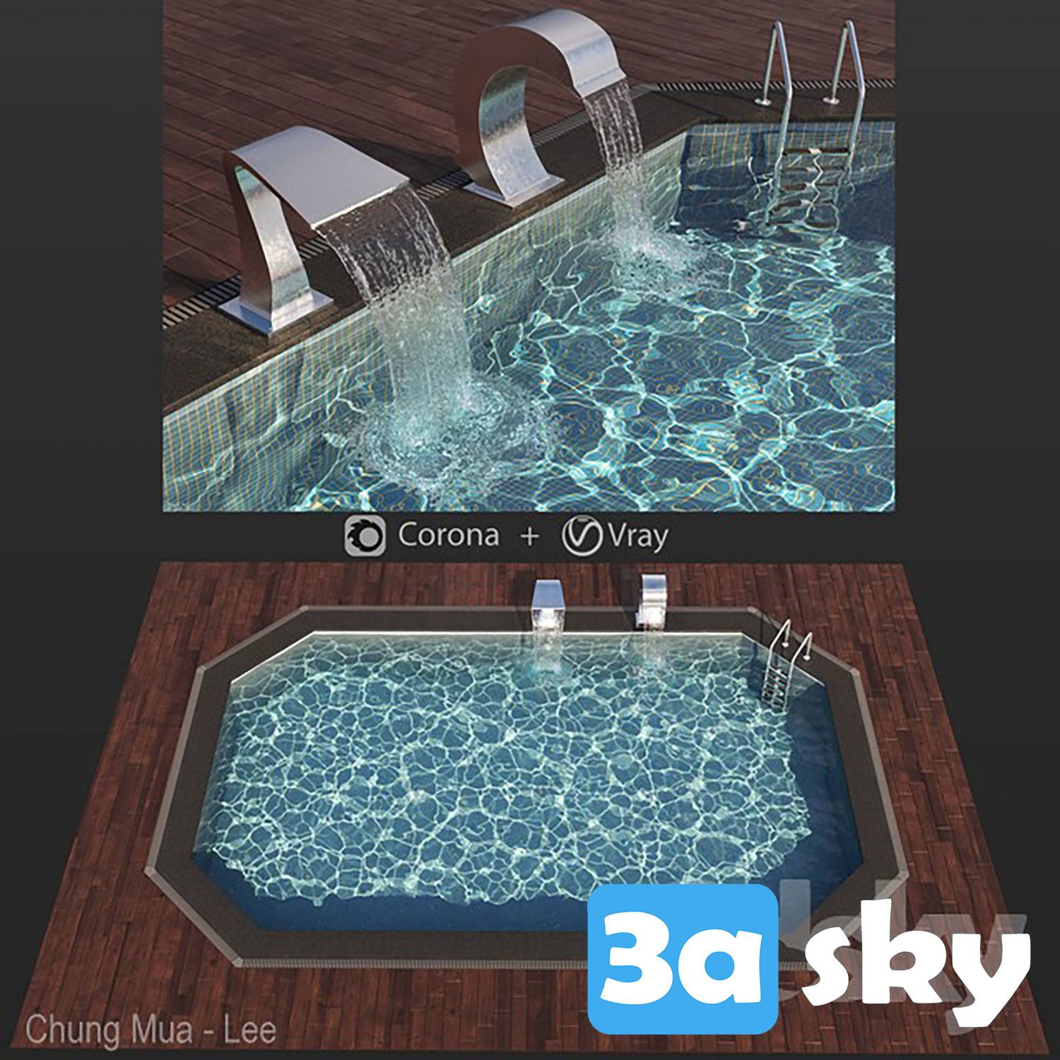 This 3DS MAX architecture file features a beautiful swimming pool waterfall design. Perfect for architectural visualization projects, this high-quality 3D model showcases a serene and luxurious pool setting with a cascading waterfall. Download this file to enhance your architectural designs and presentations.
