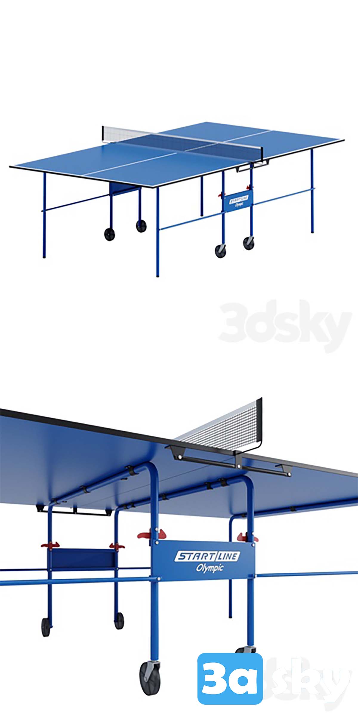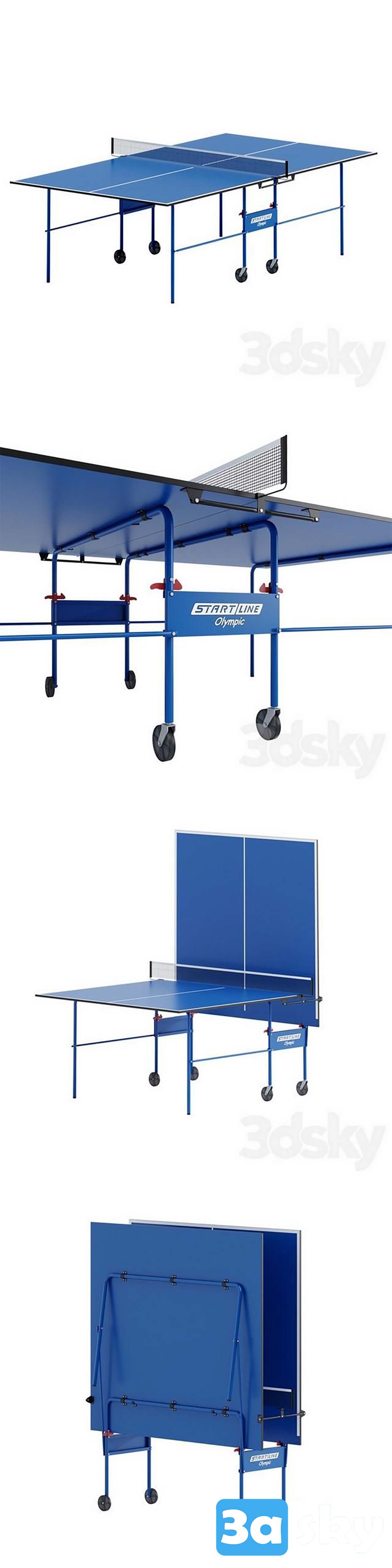 This 3D model features the Table Tennis Start Line Olympic design in three different positions. It is ideal for interior decoration projects, adding a sporty and dynamic element to your space. Download this high-quality 3DS MAX file to enhance your design projects.