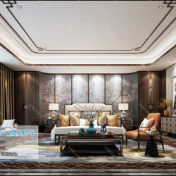 Chinese Style Bedroom Space 3D Scene