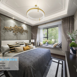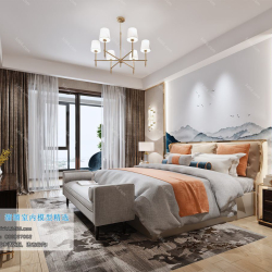 Bedroom Space Chinese Style 3D Scene