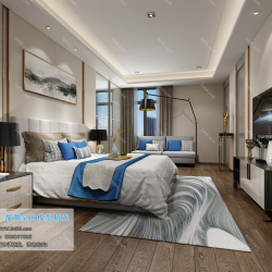 Chinese Style Bedroom Space 3D Scene