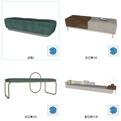 F Studio Pouf and Bench 3D Model