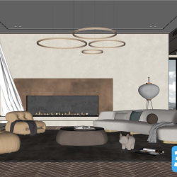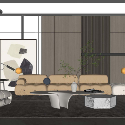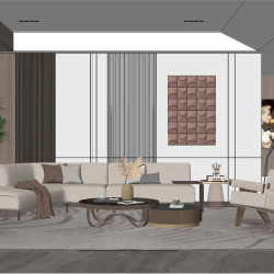 Modern Style Living Room 3D Scene