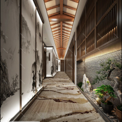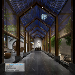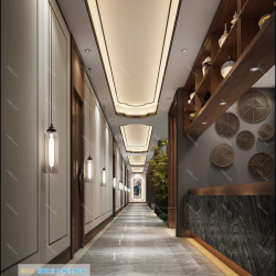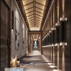 V Elevator Lobby Aisle Chinese Style Vray Model 005 Preview