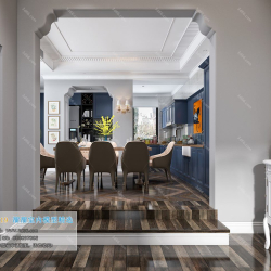 European Style Restaurant Dining Room Vray Model 003