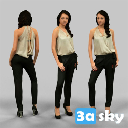 Girl in Black Pants and Golden Top 3D Model