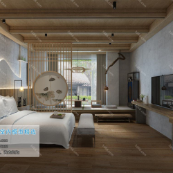 Japanese Style Bedroom Space 3D Scene