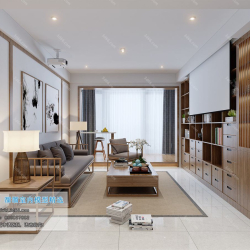 Japanese Style Living Room 3D Scene