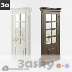 Wooden Door with Mirror 3D Model