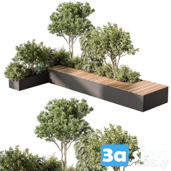 Urban Furniture Bench with Plants 3D Model