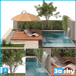 Backyard with Pool and Plants 3D Model