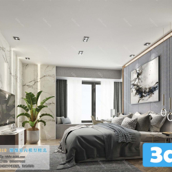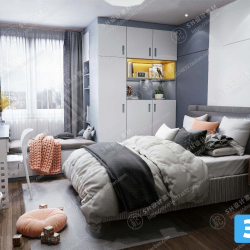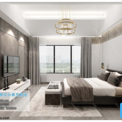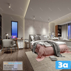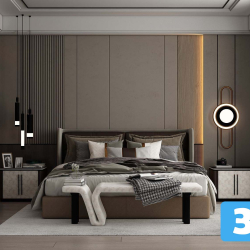 Modern Bedroom Scene 3D Model