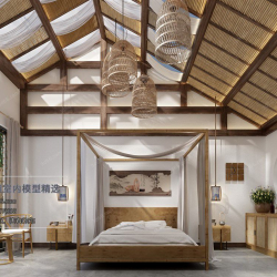Southeast Asian Style Bedroom Space 3D Scene