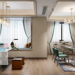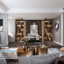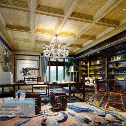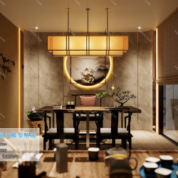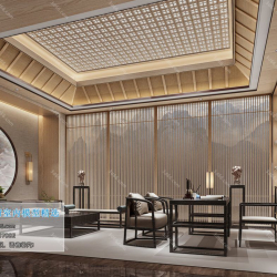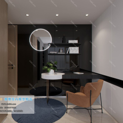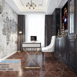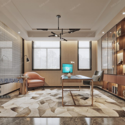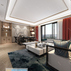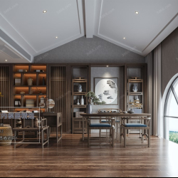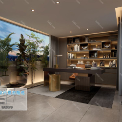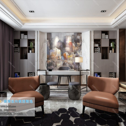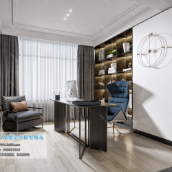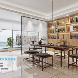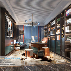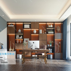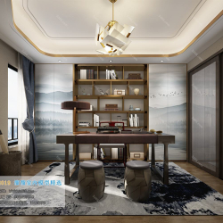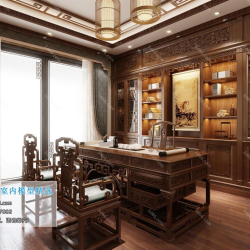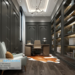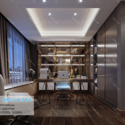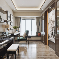 Study Space Modern Style Chinese Style Vray Model 001