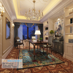 European Style Study Space 3D Scene