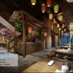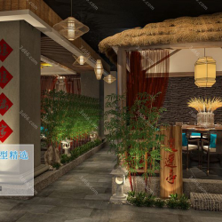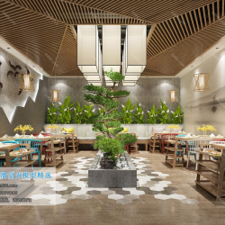 V Hotel Tea House Cafe Southeast Asian Style 3D Scene