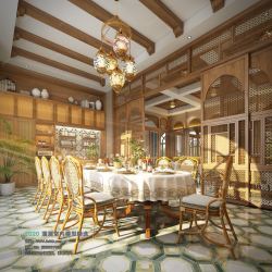 V Hotel Teahouse Southeast Asian Style Vray Model 006 Preview