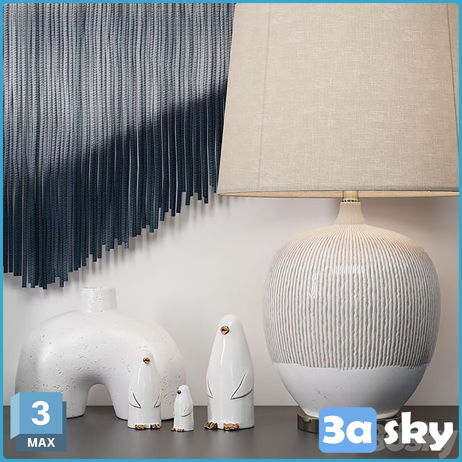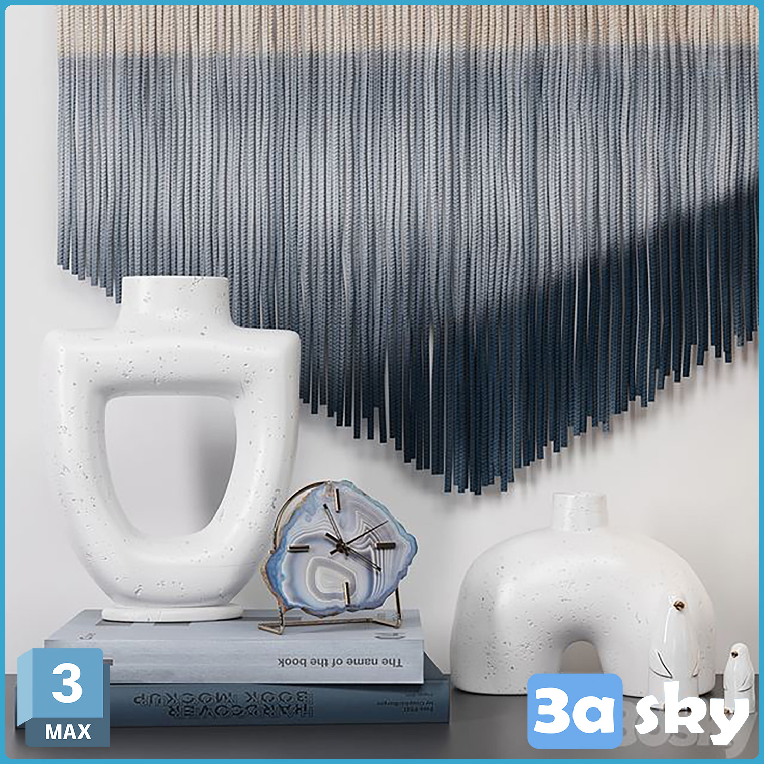 This 3D model showcases a charming decoration set featuring a teddy bear and a wool macrame design. Perfect for adding a cozy and playful touch to your interior design projects. The intricate details of the macrame and the adorable teddy bear make this decoration set a unique addition to any space.