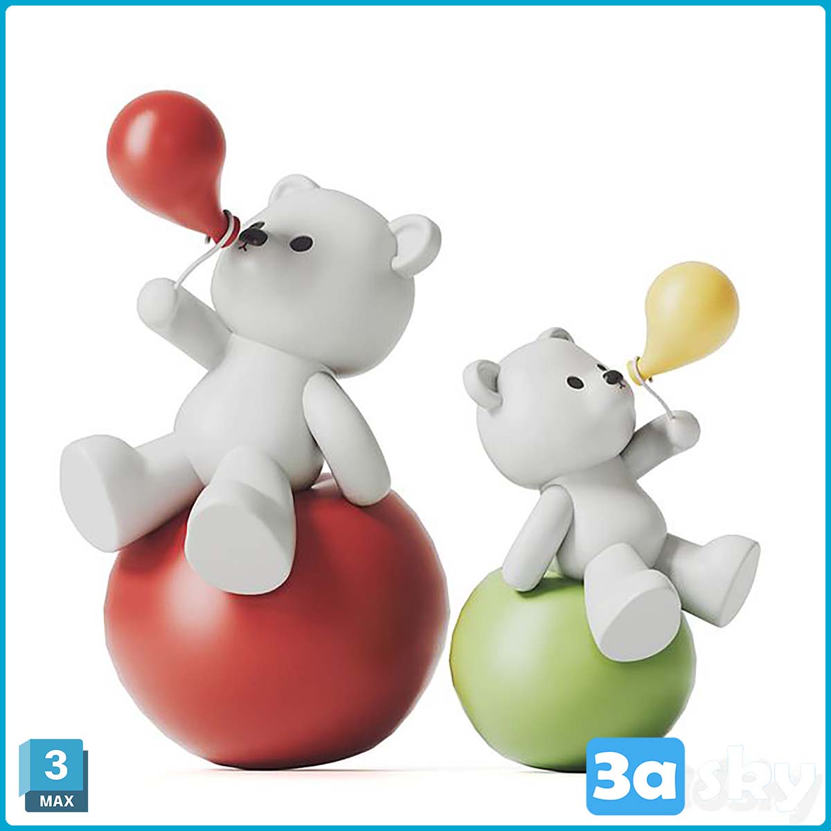 This 3D model features a cute teddy bear holding colorful balloons, suitable for use in children's room decor, animations, or any project related to kids. The design is detailed and realistic, making it a charming addition to any creative project.