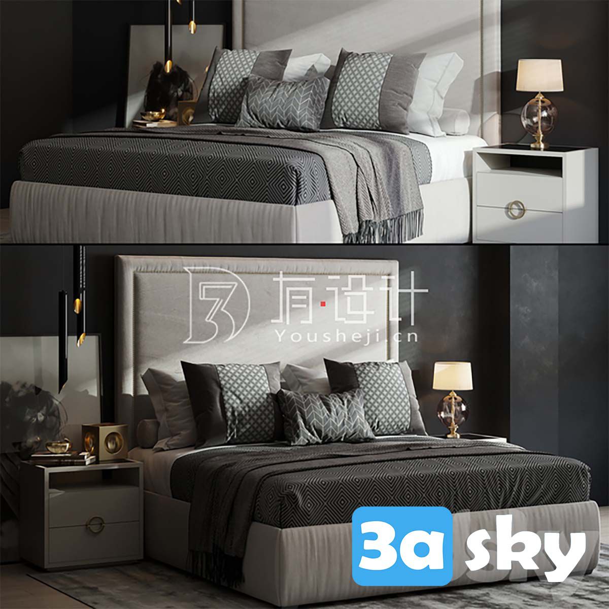 This 3D model showcases a modern and elegant sofa and chair bedroom set, ideal for interior design visualization and projects. The set includes a comfortable sofa and a matching chair, designed to enhance the aesthetics of any bedroom space. The detailed design and textures make this furniture set a great addition to your 3D modeling library.