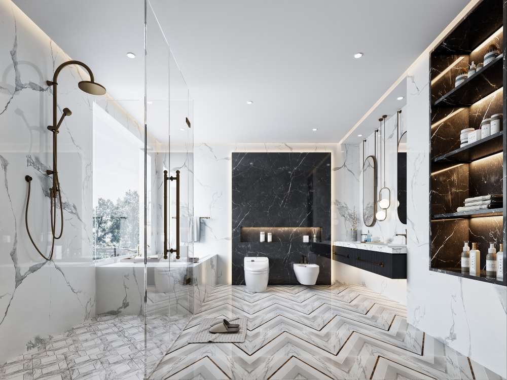 This 3D scene showcases a modern toilet bathroom design created in 3DS MAX. The scene includes detailed elements such as fixtures, tiles, and lighting, providing a realistic representation of a contemporary bathroom. Explore the intricate details and design elements in this 3D model to inspire your own interior design projects.