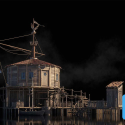 This 3D model showcases a detailed treasure island scene created with Kitbash3D V60. The assets are optimized for use in Unreal Engine projects, providing a realistic and immersive environment for game development or visualizations.