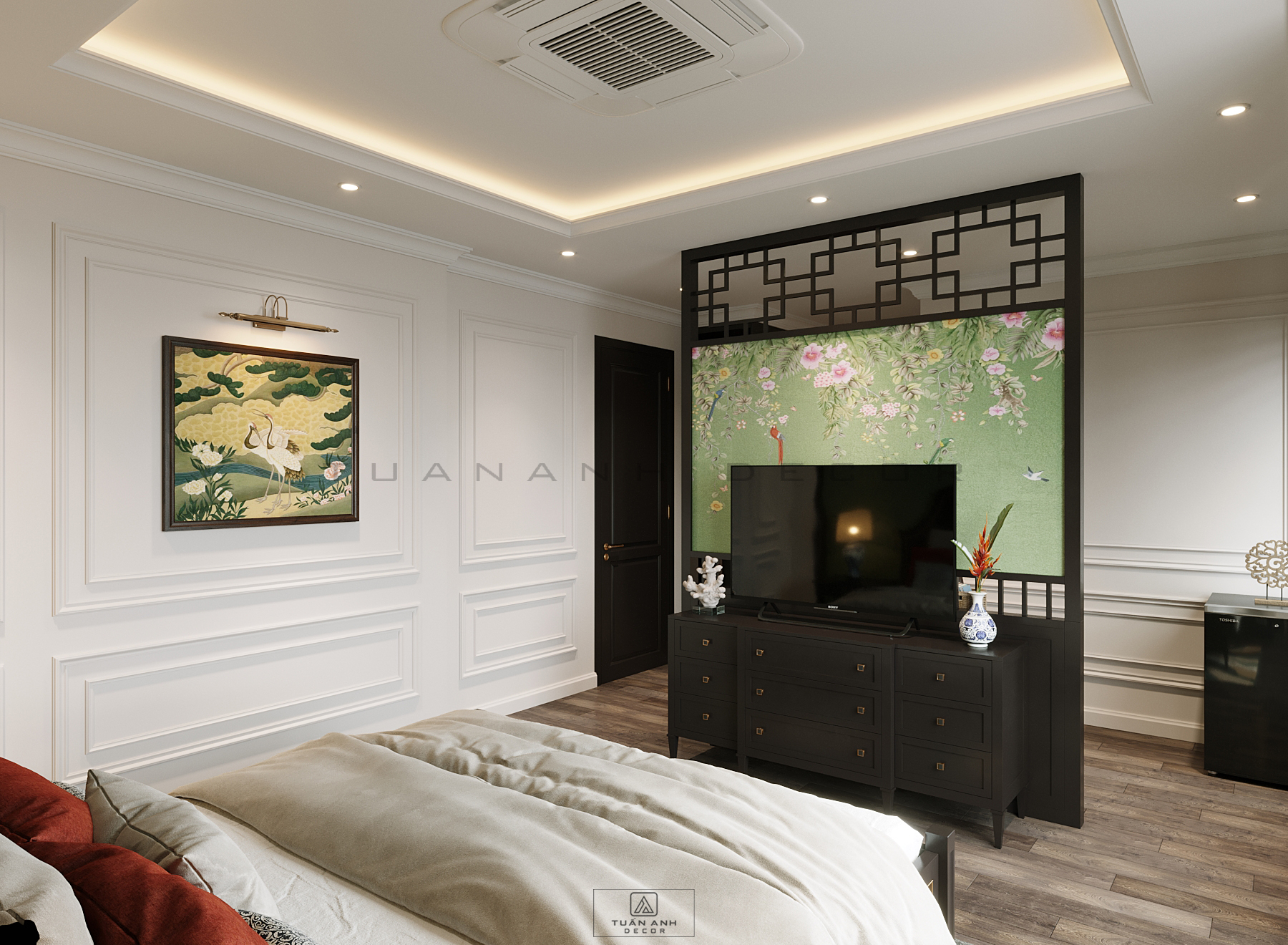 This 3D scene by Tuan Anh Decor features a beautifully crafted interior design visualization. The scene includes various furniture pieces and home decor items, creating a stylish and inviting space. Explore this 3D model for inspiration and ideas for your own interior design projects.