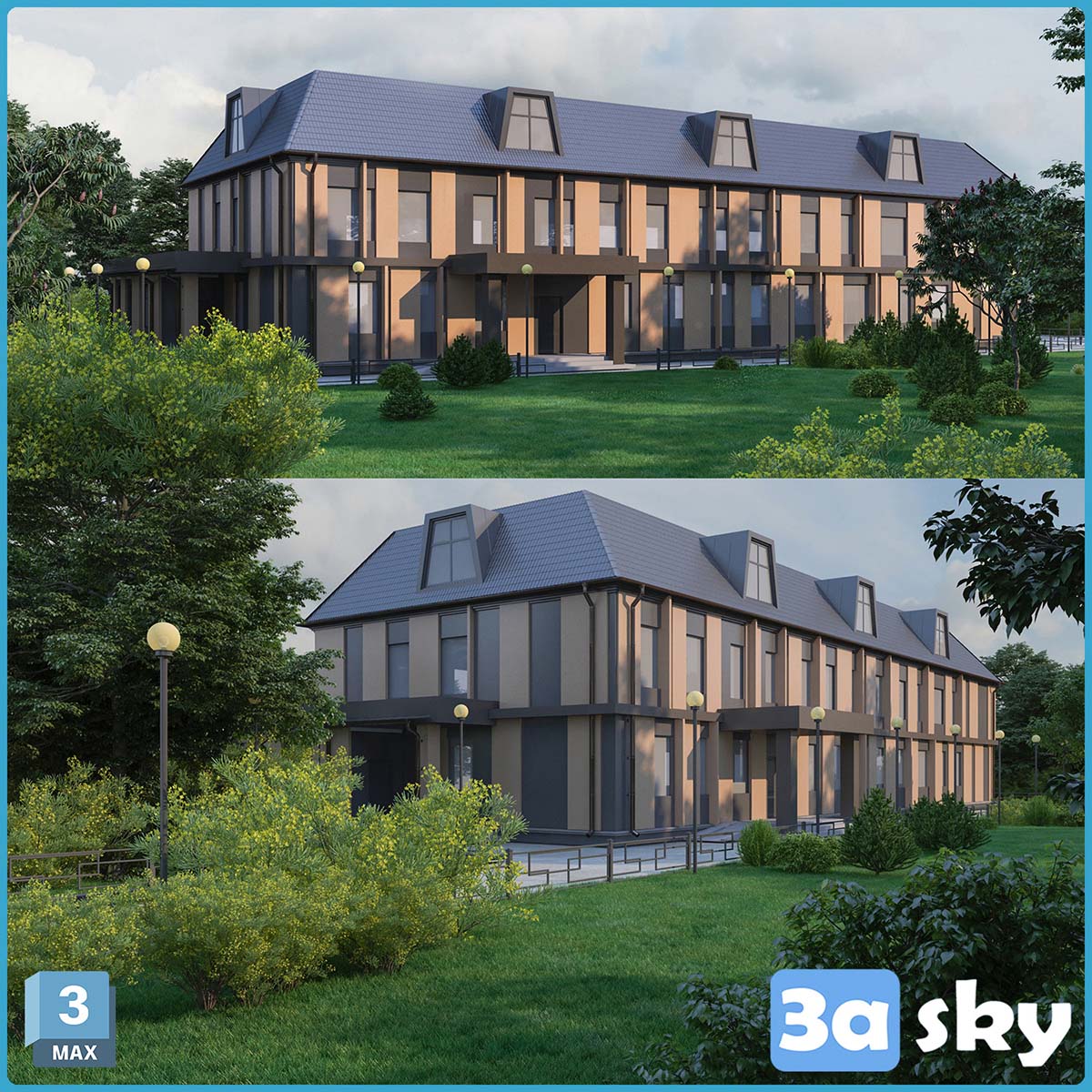 This 3D model showcases a two-story municipal building designed in 3DS MAX. It is a perfect representation of modern architecture, suitable for various design and visualization projects. The intricate details and realistic textures make this model a valuable asset for architects and designers looking to enhance their presentations. Download this high-quality 3D model now and bring your architectural visions to life.