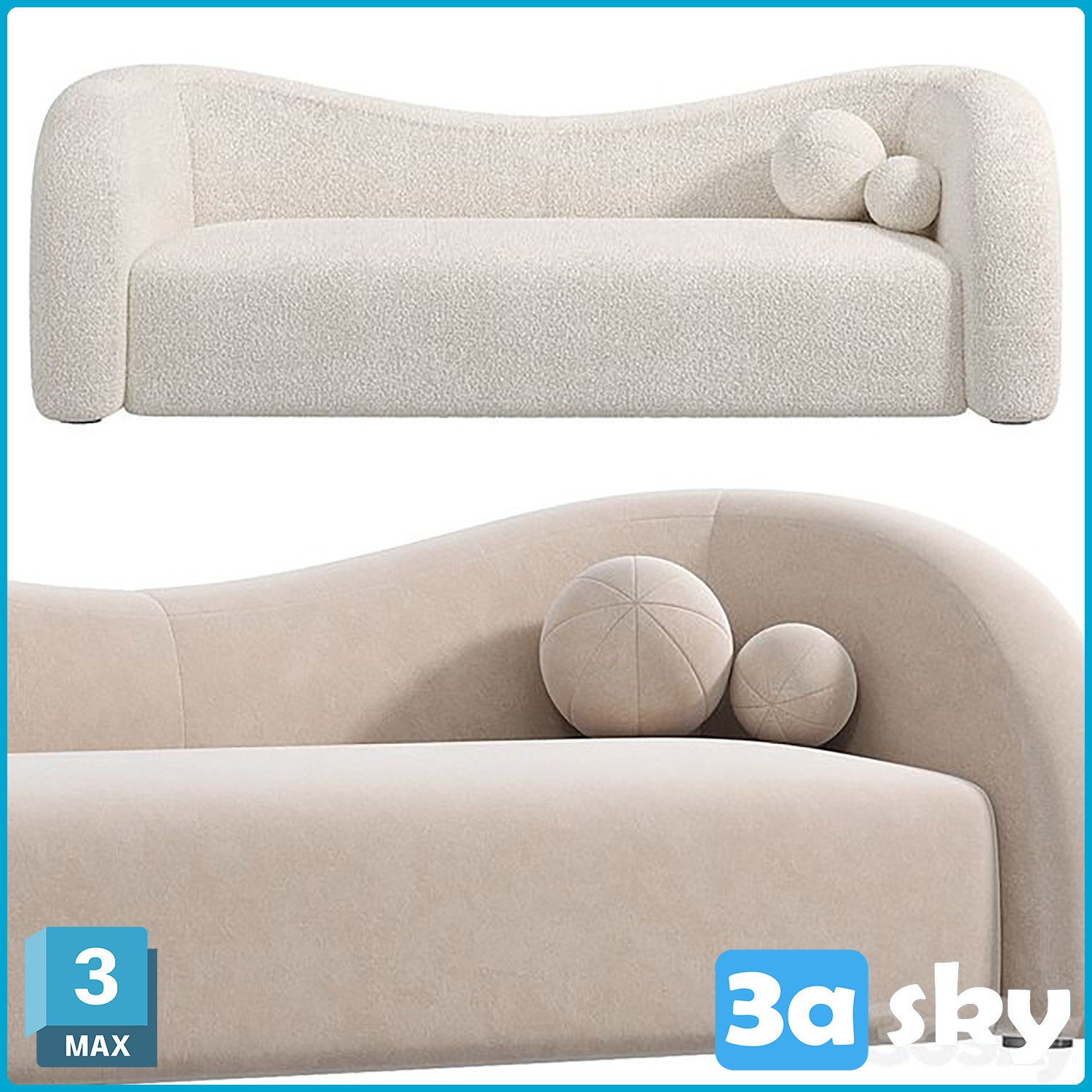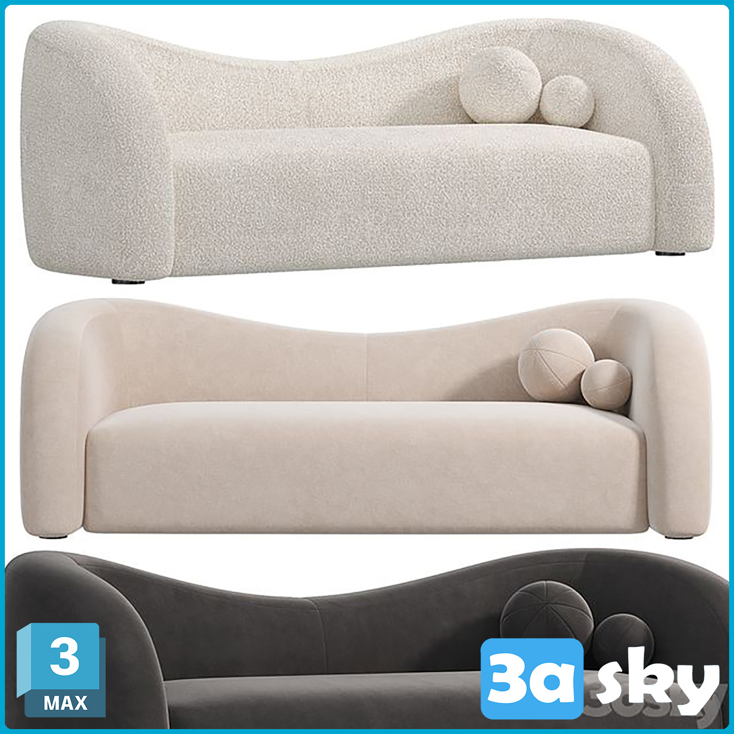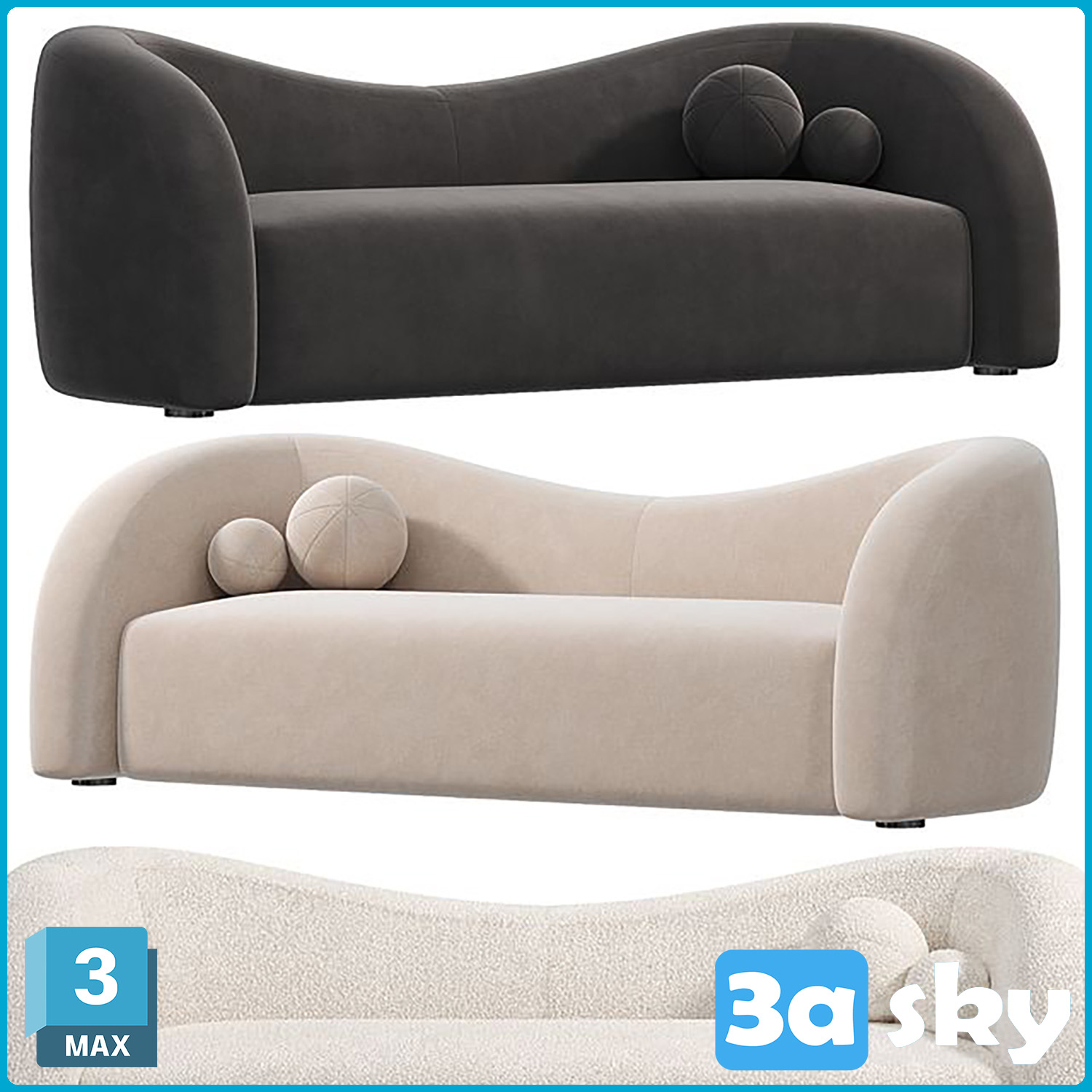 This 3D furniture model features a V Boucle upholstered curved design, suitable for modern interior settings. The high-quality rendering and attention to detail make it a great addition to any interior design project. Download this 3D model now to enhance your design library.