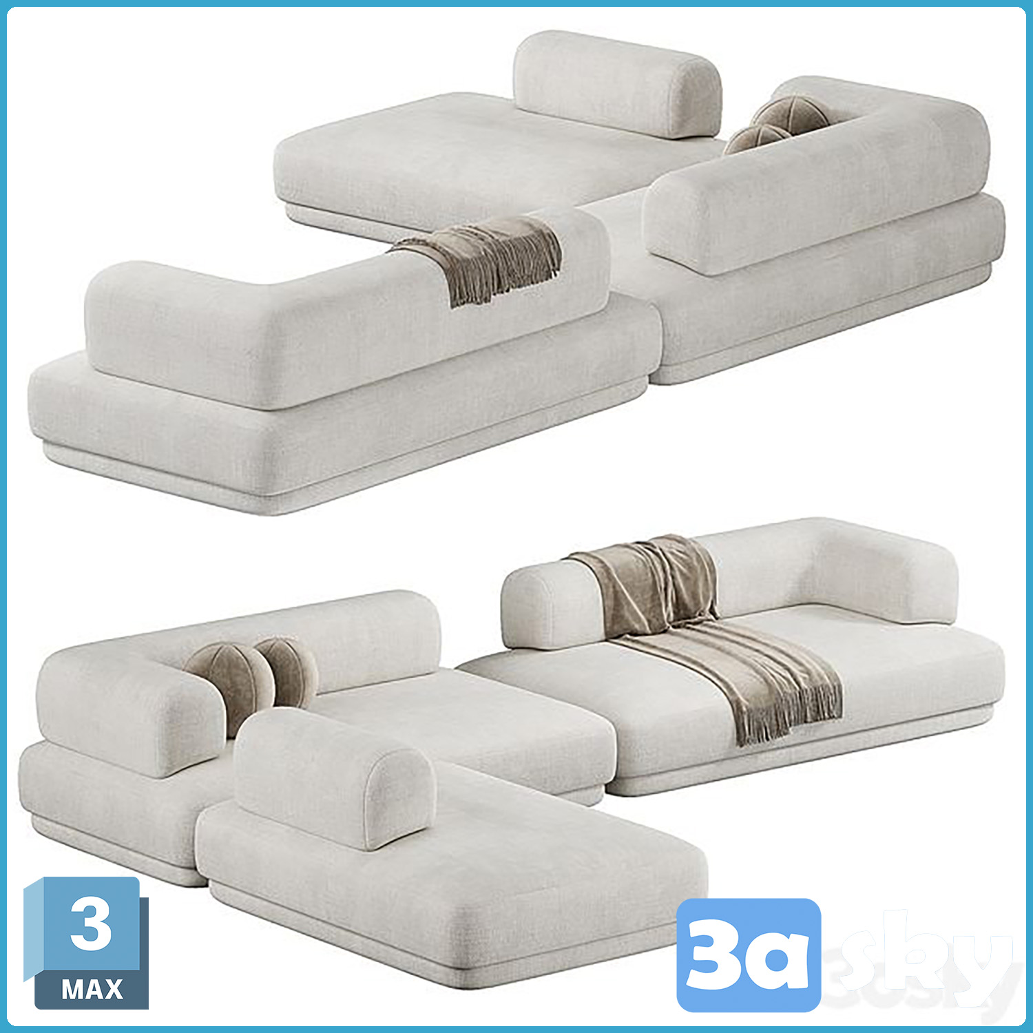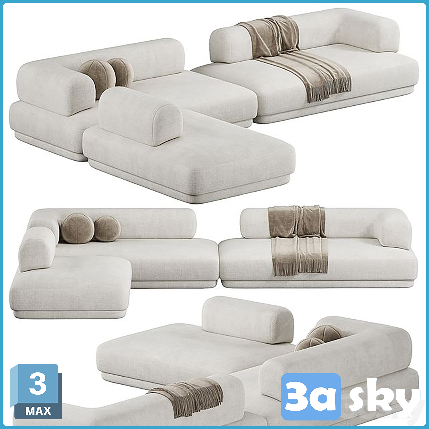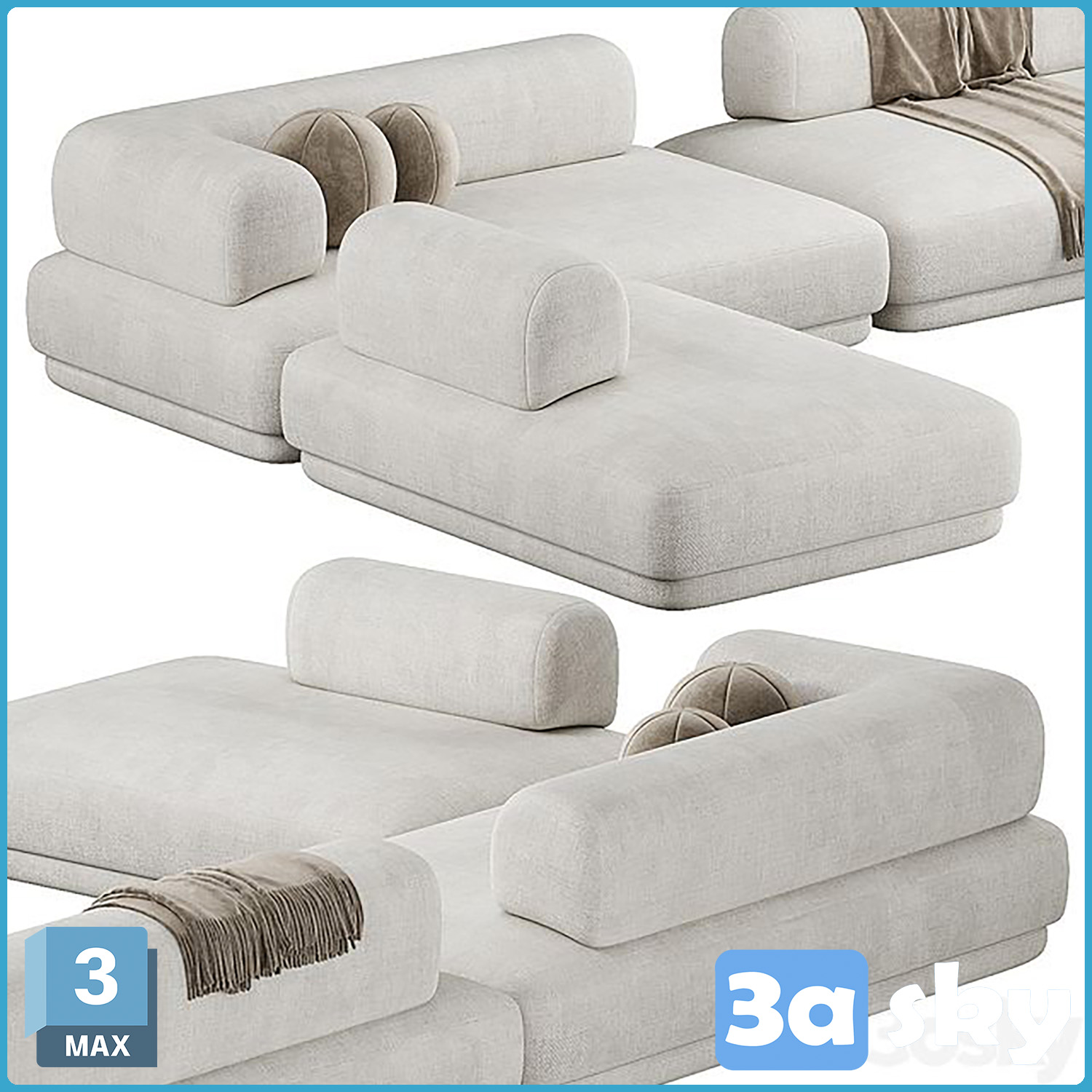 This 3D model showcases the V Bumper Sectional Sofa, a high-quality furniture piece designed for modern living spaces. Created in 3DS MAX, this sofa features a sleek and contemporary design, perfect for adding a touch of elegance to any interior setting. The V Bumper Sectional Sofa is ideal for architectural visualization projects, interior design presentations, and furniture modeling. Download this 3D model to enhance your design projects with a premium furniture element.