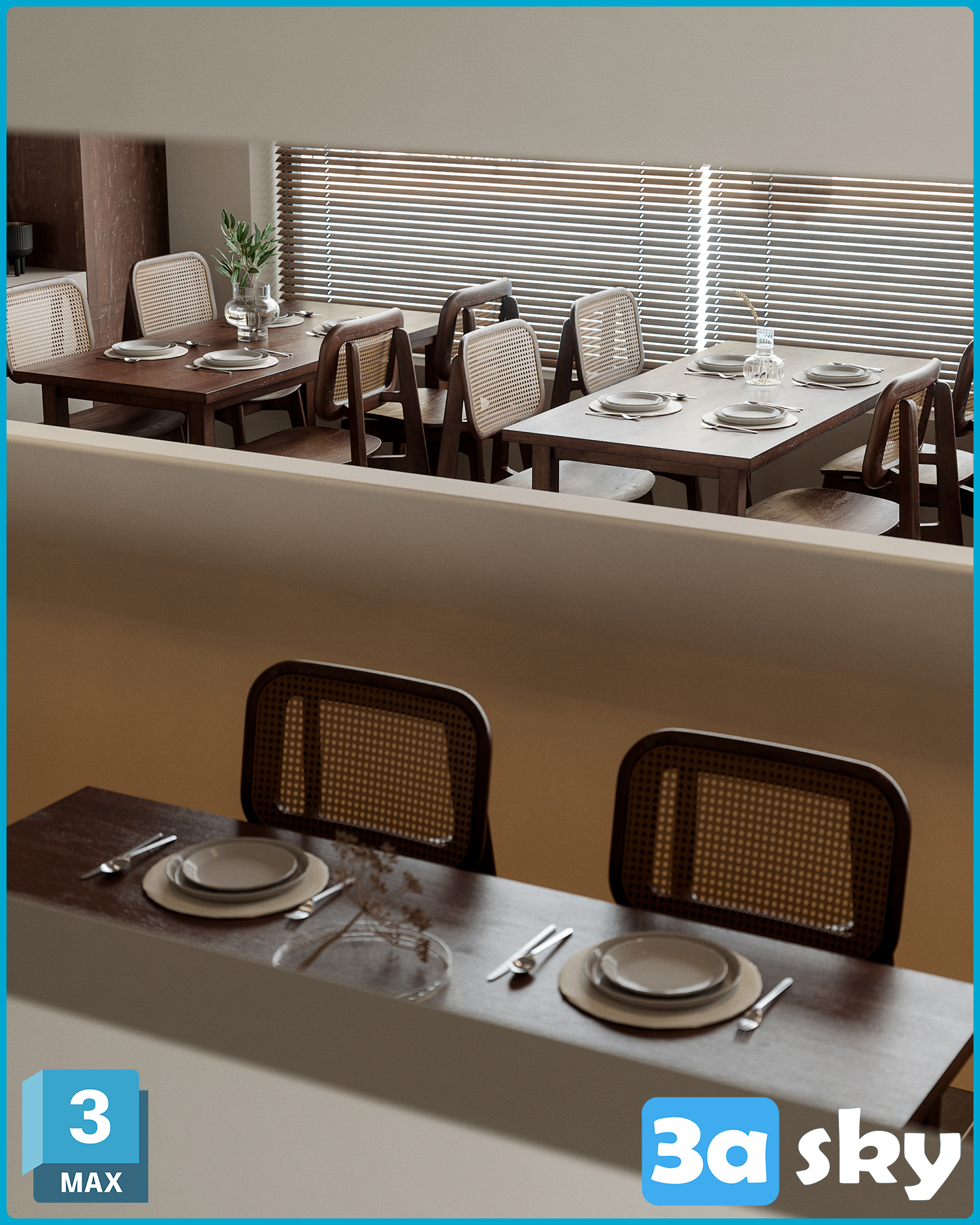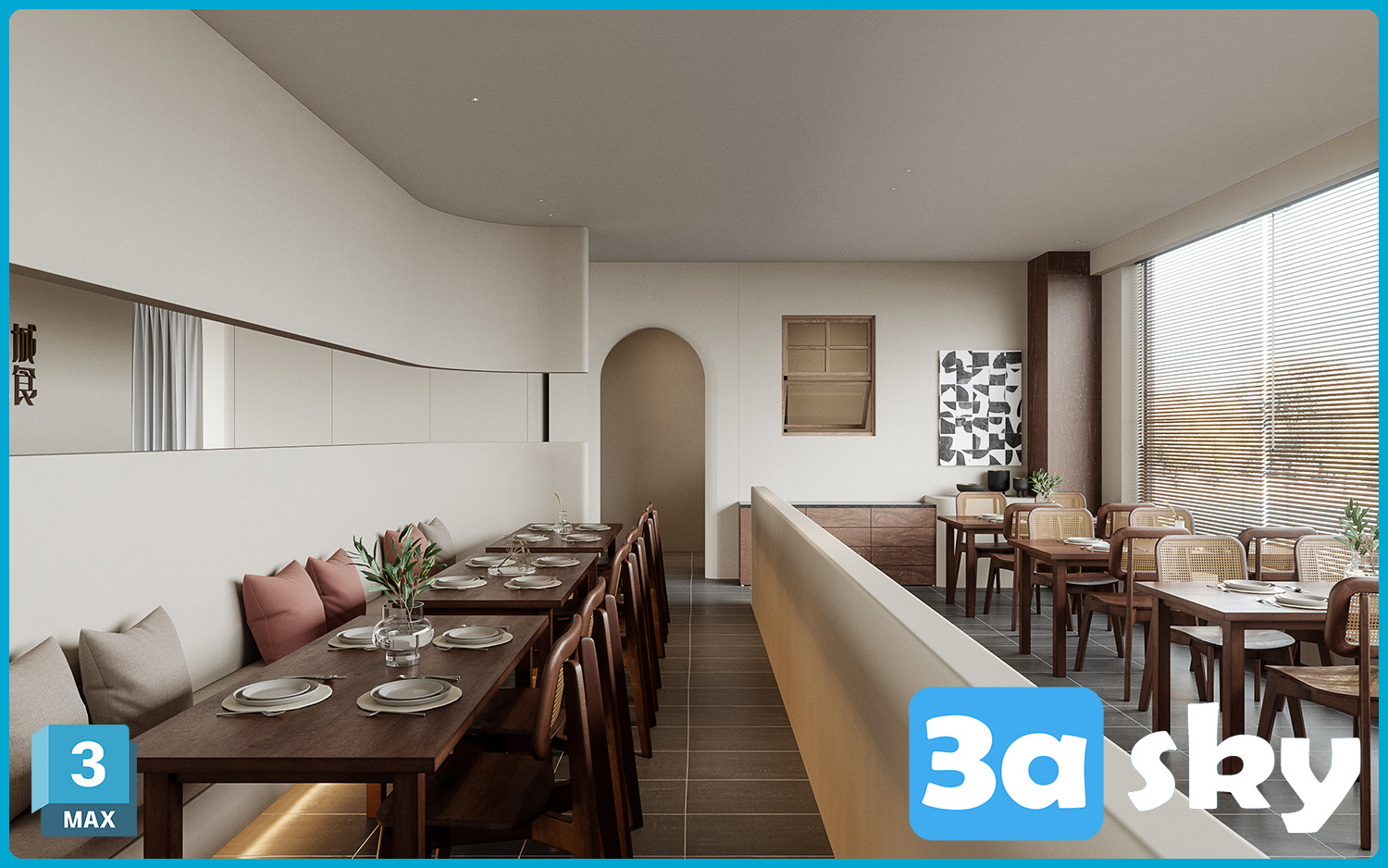 This 3D scene showcases the interior design of V Cafe, featuring a modern and cozy ambiance. The visualization was created using 3DS MAX, highlighting the attention to detail and creativity in the design. Explore this stunning cafe setting and get inspired for your own interior design projects.
