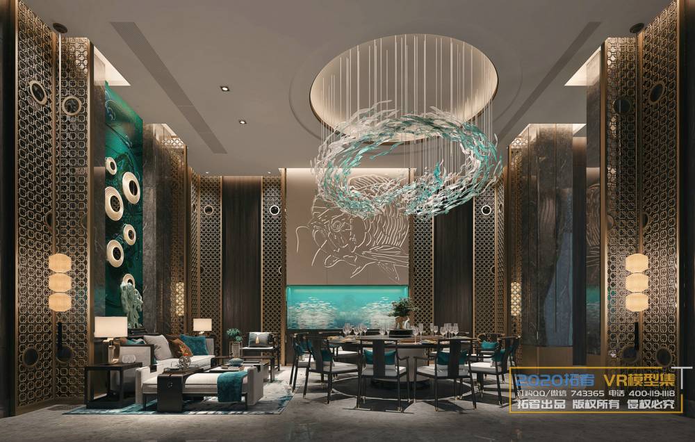 This 3D scene features a beautifully designed dining room with modern furniture and elegant decor. The space is meticulously crafted to create a harmonious blend of style and functionality, perfect for showcasing interior design concepts.