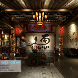 V Hotel Tea House Cafe Chinese Style 3D Scene