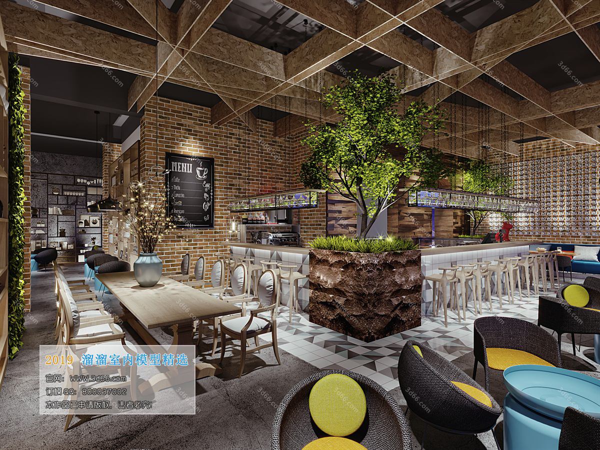 This 3D scene showcases the interior design of a tea house cafe in a mix style. The ambiance is a blend of modern and traditional elements, creating a unique and inviting space. Explore the intricate details and layout of the cafe through this preview image.