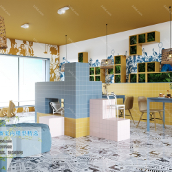 This 3D scene showcases the V Hotel Tea House Cafe in a mix style design. The interior features a blend of modern and traditional elements, creating a unique and inviting atmosphere. The intricate details and thoughtful layout make this space a perfect blend of elegance and comfort.