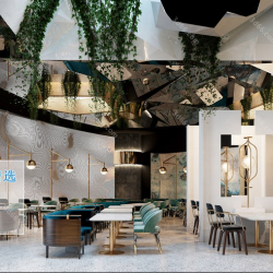 This 3D scene showcases the V Hotel Tea House Cafe in a postmodern style. The design features a blend of modern architecture and unique elements that create a visually stunning environment. Explore the intricate details and innovative design concepts in this captivating visualization.